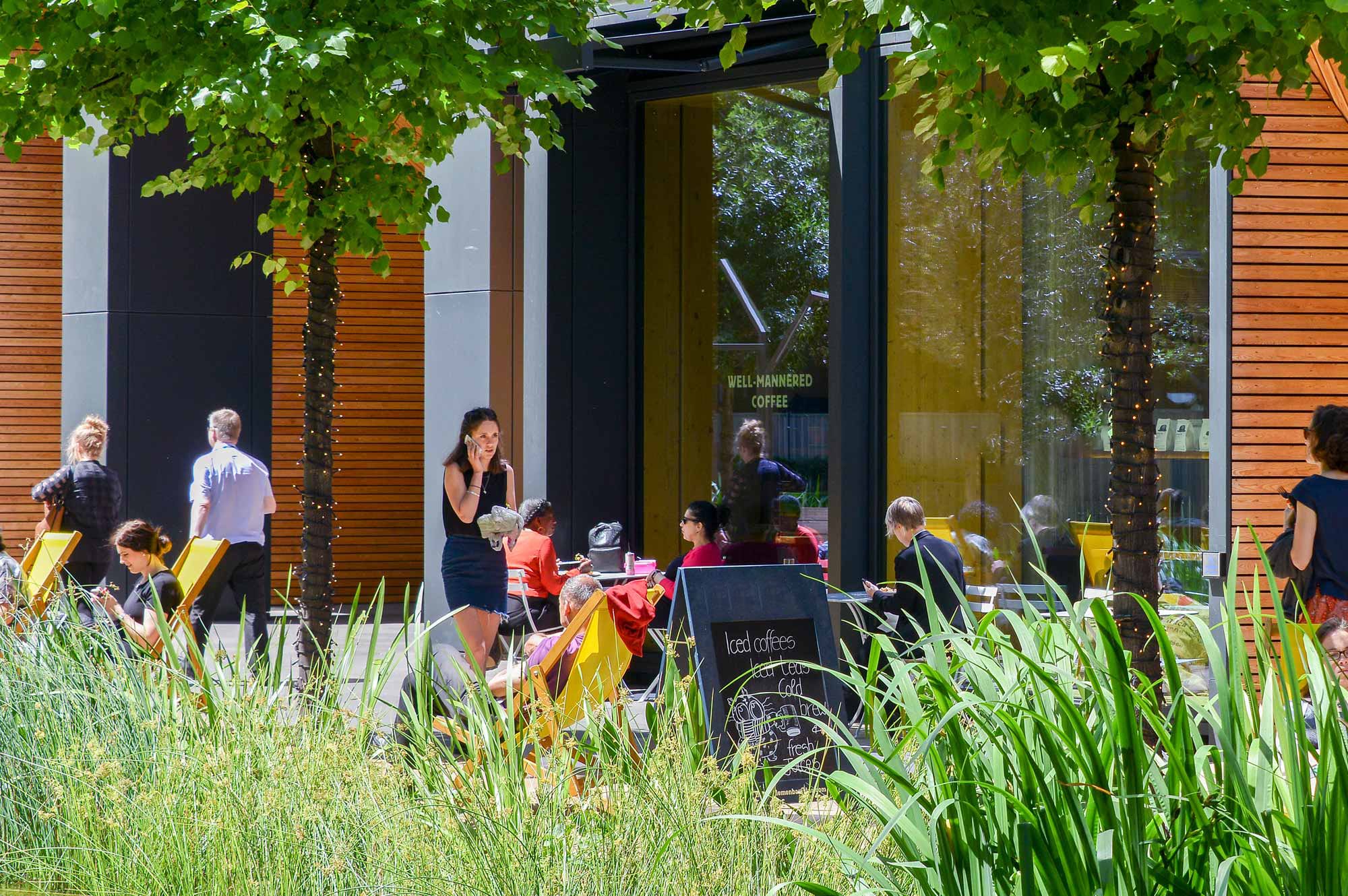 The campus delivers a world class student experience with cafés, touchdown spaces and fitness studios located alongside spectacular water gardens. A dedicated community team are the conduit for cross campus events including welcome fairs, industry/career talks, street food markets, sports days and music festivals.